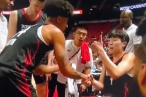 开拓者的夏季联赛第一场,杨瀚森惊艳了全世界。不过在第三节节末,当杨瀚森张开双手要球,队友DJ-卡尔顿却完全无视,在疯狂运球之后高难度强投——皮球砸筐而出。